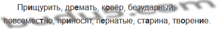 Пр(..)щурить, др(..)мать, к(..)вёр, без(?)ударный, повсемес(?)но, пр(..)носят, п(..)рнатые, ст(..)рина, тв(..)рен(?)е.