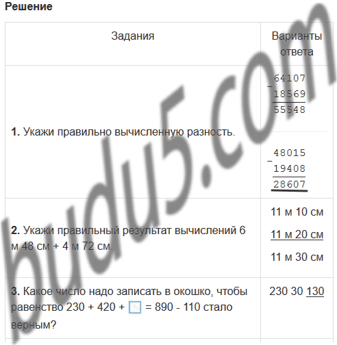 | 1. Укажи правильно вычисленную разность. |