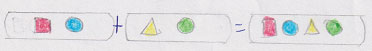 Красный квадрат, синий круг + жёлтый треугольник, зелёный круг = красный квадрат, синий круг, жёлтый треугольник, зелёный круг.