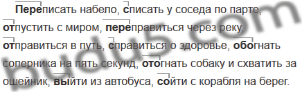 ..писать набело, ..писать у соседа по парте, ..пустить с миром, ..правиться через реку, ..правиться в путь, ..правиться о здоровье, ..гнать соперника на пять секунд, ..гнать собаку и схватить за ошейник, ..йти из автобуса, ..йти с корабля на берег.