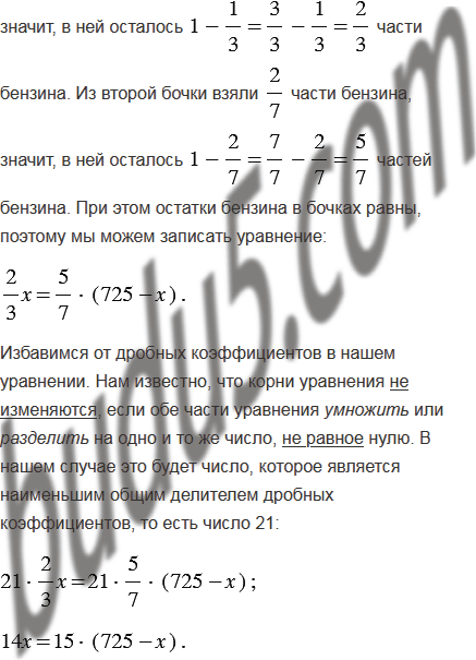 В двух бочках 725 л бензина. Когда из первой бочки взяли
