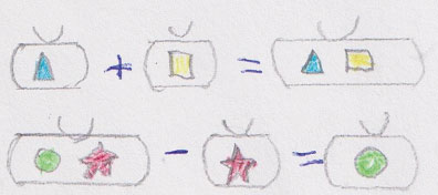 6. На какие части разбиты группы фигур? Что обозначают буквы в равенствах? Запиши равенства одного столбика по своему выбору, заполнив пропуски.