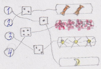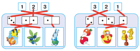 Соединяем количество точек с предметами, а точки с цифрой, соответствующей их общему значению.