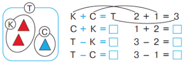 4 - это 3 и 1, поэтому 4 - 3 = 1, так как из 4 вычли часть 3, осталась часть 1. Далее рассуждаем аналогично.
