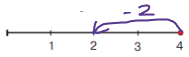 К числу 2 присчитали 2 единицы, от числа 4 отсчитали 3 единицы.