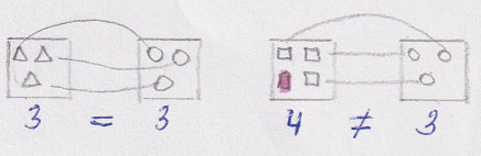 Если в одной совокупности не такое же количество предметов, как в другой, то соответствующие числа не равны.