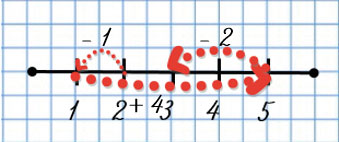 2 - 1 + 4 - 2 = 3 1) 2 - 1 = 1 2) 1 + 4 = 5 3) 5 - 2 = 3 |