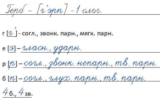 Прочитайте. Продолжите звуко-буквенный разбор слова герб.