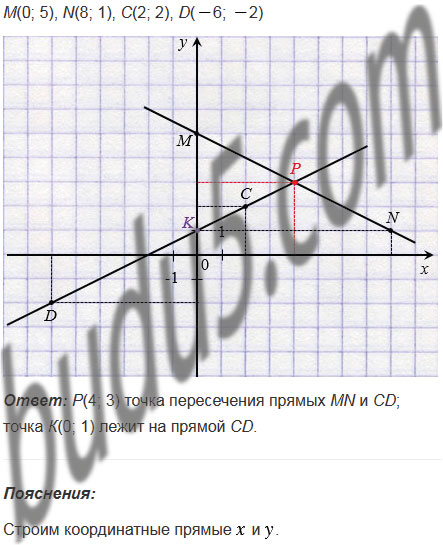 2). Найдите координаты точки пересечения прямых МN и CD. На какой из этих прямых лежит точка К(0; 1)?