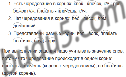 Прочитайте пары слов. Запишите, группируя их по признакам: а) есть чередование в корнях; б) нет чередования в корнях; в) представлены разные корни.