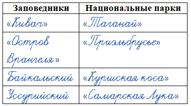 3. Узнай у взрослых и запиши, какие заповедники, национальные парки есть в вашем крае.