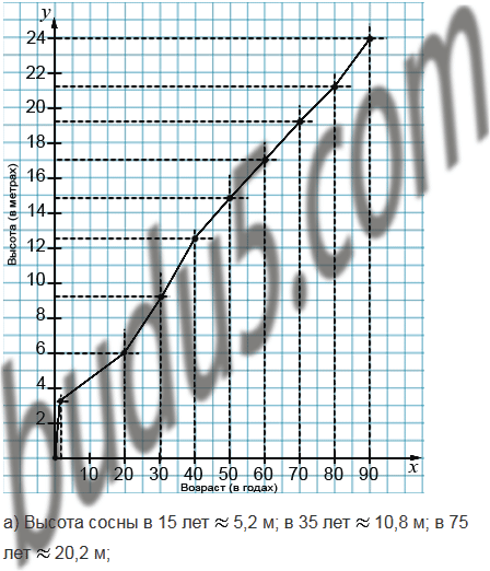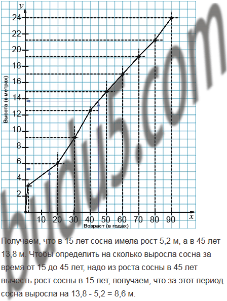 г) на сколько метров выросла сосна за время от 15 до 45 лет.