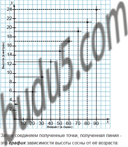 Постройте график зависимости высоты сосны от её возраста. Пользуясь графиком, найдите: