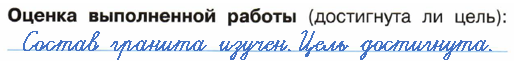 1) Рассматриваем кусочек гранита с помощью лупы. Находим цветные зёрна – минерал полевой шпат. Находим полупрозрачные зёрна – минерал кварц. Находим чёрные блестящие зёрна – минерал слюда.