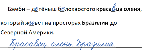 Бэмби (ед. ч.) – детеныш (ед. ч.) белохвостого красавца (ед. ч.) оленя (ед. ч.), который живет на просторах (мн. ч.) от Бразилии (ед. ч.) до Северной Америки (ед. ч.).