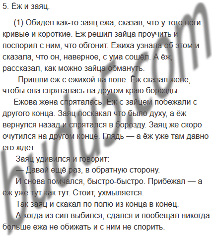 (1) Обидел как-то заяц ежа, сказав, что у того ноги кривые и короткие. Ёж решил зайца проучить и поспорил с ним, что обгонит. Ежиха узнала об этом и говорит ежу: