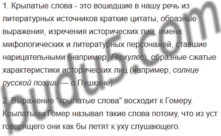 Одним из средств образной и выразительной литературной речи являются крылатые слова. Название это восходит к Гомеру, в поэмах которого («Илиада» и «Одиссея») оно часто встречается (Он крылатое слово промолвил; Между собой обменялись словами крылатыми тихо). Крылатыми Гомер называл такие слова потому, что из уст говорящего они как бы летят к уху слушающего. Гомеровское выражение «крылатые слова» стало термином языковедения. Им обозначают вошедшие в нашу речь из литературных источников краткие цитаты, образные выражения, изречения исторических лиц, имена мифологических и литературных персонажей, ставшие нарицательными (например, Геркулес), образные сжатые характеристики исторических лиц (например, солнце русской поэзии — о Пушкине).