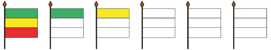 8. Закрась в тетради полоски каждого флажка тремя цветами - жёлтым, зелёным и красным. Все флажки должны быть разными.
