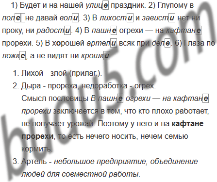 1) Будет и на нашей (улица) праз(?)ник. 2) Глупому в (поле) не давай (воля). 3) В (лихость) и (зависть) нет ни проку, ни (радость). 4) В (пашня) огрехи — на (кафтан) прорехи. 5) В х..рошей (артель) всяк при (дело). 6) Глаза по (ложка), а не видят ни (крошка).