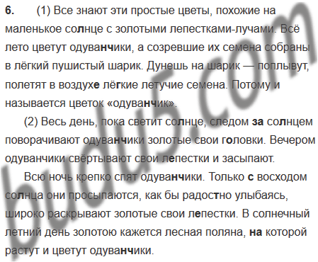 (1) Все знают эти простые цветы, похожие на маленькое со(?)нце с золотыми лепестками-лучами. Всё лето цветут одуван(?)чики, а созревшие их семена собраны в лёгкий пушистый шарик. Дунешь на шарик — поплывут, полетят в воздух.. лё..кие летучие семена. Потому и называется цветок «одуван(?)чик».