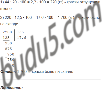 На ремонт физкультурного зала было израсходовано 44 кг краски, что составляет 20% всей краски, отпущенной со склада на ремонт школы. Сколько килограммов краски было на складе, если школе отпущено 12,5% имевшейся краски?