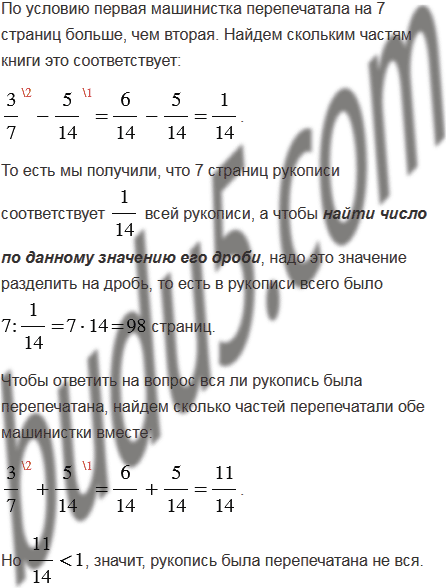 всей рукописи. Сколько страниц было в рукописи, если первая машинистка перепечатала на 7 страниц больше, чем вторая? Вся ли рукопись была перепечатана?