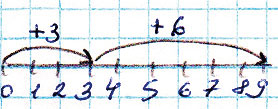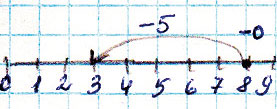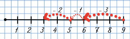 Если знак "+", то передвигаемся по числовому отрезку вправо, если знак "-", то влево.