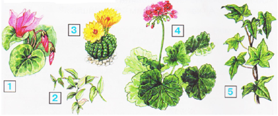 1. Вспомни названия растений, которые есть у тебя дома, в классе. 2. Как надо ухаживать за комнатными растениями?