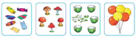 1) На картинке изображены 5 конфет и 2 пустых обёртки от конфет.