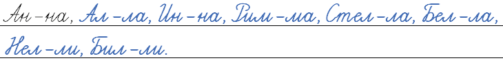Ан–на, Ин–на, Ин–но–кен–тий, Жан–на, Ал–ла, Рим–ма, Эм–ма, Бел–ла, Эл–ла.