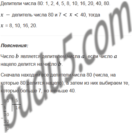 Запишите все значения , являющиеся делителями числа 80, при которых верно неравенство 7 40.