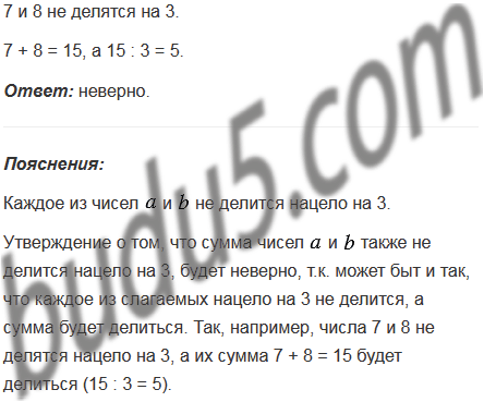 Известно, что каждое из чисел и не делится нацело на 3. Верно, что их сумма также не делится нацело на 3.