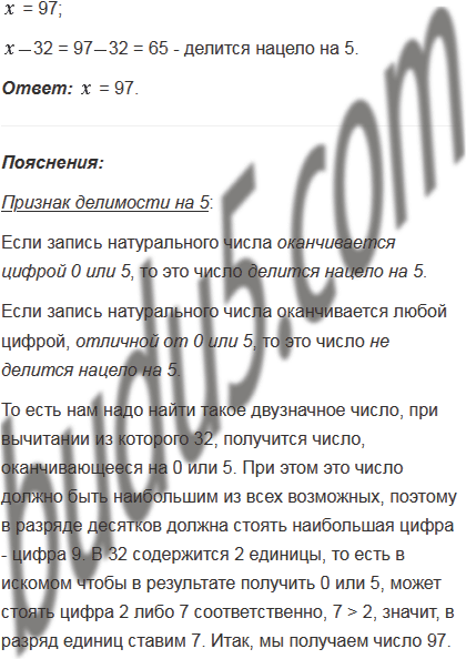 Найдите наибольшее двузначное число , при котором значение выражения 32 делится нацело на 5.