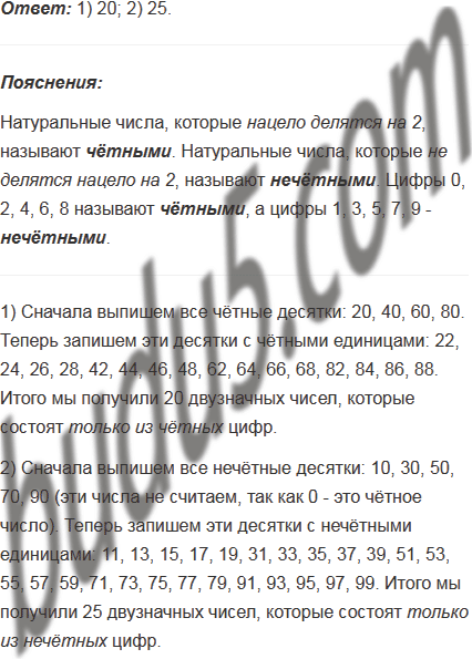 Сколько существует двузначных чисел, для записи которых использованы только: 1) чётные цифры; 2) нечётные цифры?