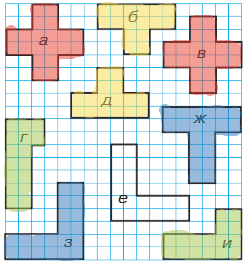 1. Найди на каждом рисунке равне фигуры. Обоснуй свой ответ.