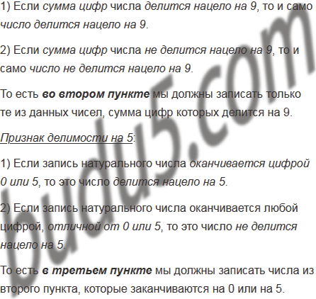 Из чисел 7 826, 1 215, 4 075, 2 880, 3 921, 6 072, 8 142 выпишите те, которые делятся нацело: 1) на 3; 2) на 9; 3) на 9 и на 5.