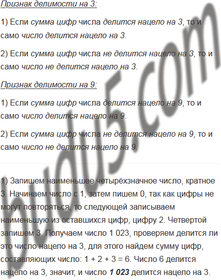 4) четырёхзначное число, кратное 5 и 9.