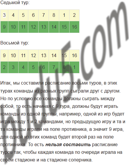 В чемпионате страны по футболу принимают участие 16 команд, каждая из которых имеет свой стадион. Все команды должны сыграть между собой, причём в каждом туре проводится 8 игр. Можно ли составить расписание туров так, чтобы каждая команда по очереди играла на своём стадионе и на стадионе соперника?