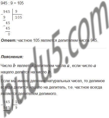 Чему равно частное чисел 945 и 9? Является ли полученное частное делителем числа 945?