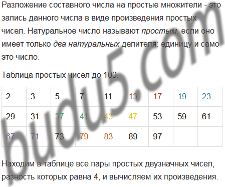 Найдите все числа, которые можно разложить на два двузначных простых множителя, разность которых равна 4. Воспользуйтесь таблицей простых чисел.