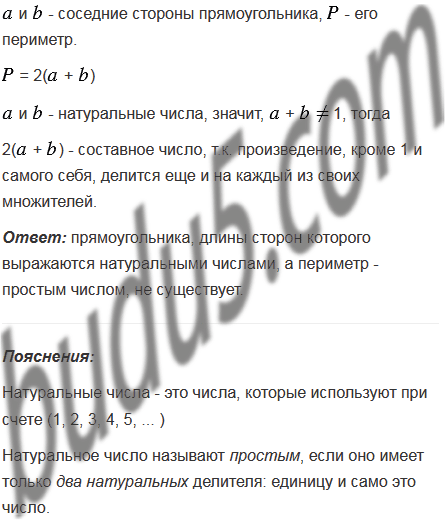Существует ли прямоугольник, длины сторон которого выражаются натуральными числами, а периметр - простым числом (длины сторон и периметр прямоугольника выражены в одних и тех же единицах измерения)? Ответ обоснуйте.