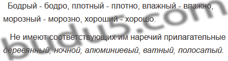 Какие прилагательные не имеют соответствующих им наречий с суффиксом -о?