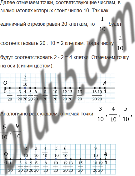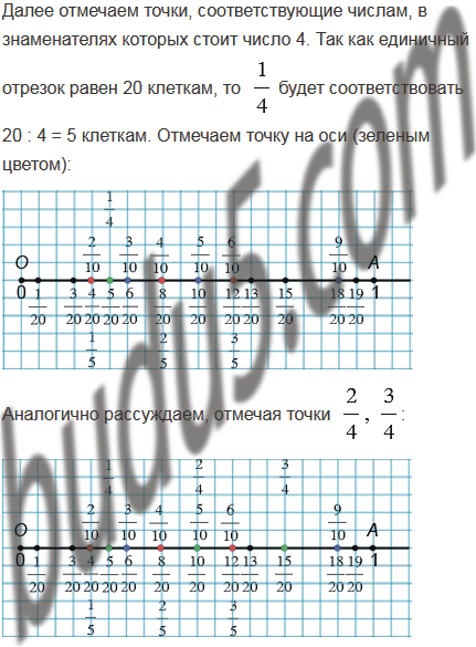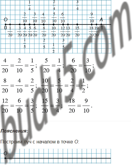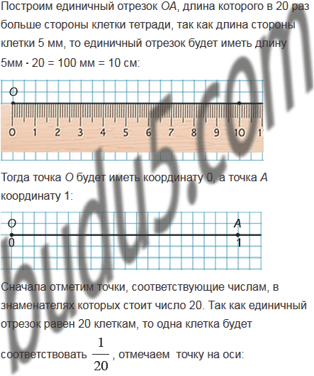 Начертите координатный луч, взяв за единичный отрезок, длина которого в 20 раз больше стороны клетки тетради. Отметьте на луче точки, соответствующие числам: