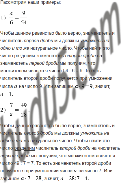 Пользуясь основным свойством дроби, найдите значение , при котором верно равенство: