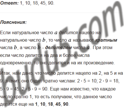 Число делится нацело на 2, на 5 и на 9. Каким ещё числам кратно это число?