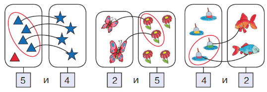 На сколько больше? На сколько меньше? Дополни и запиши равенства: