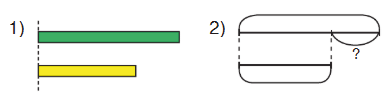 2. Вырежи из бумаги две полоски разной длины (1). Наложи их так, чтобы один конец совпал. Найди разность этих полосок.