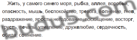 Ж..ть, у сам..го син..го моря, ры..ка, а(л, лл)ея, вороб(?)и, опас(?)ность, мыш(?), бе..покойство, тр..вога, в..лнение, гне.., ра..дражение, яр..сть, негодование, восхищение, востор.., грус(?)ть, п..чаль, уд..вление, друж..любие, с..рдечнос(?)ть, ..бида, с..мнение.