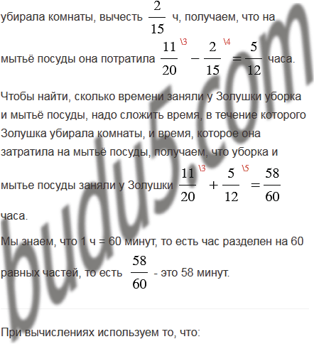 Золушка ч убрала комнаты, что на ч больше времени, которое она затратила на мытьё посуды. Сколько времени заняли у Золушки уборка и мытьё посуды?