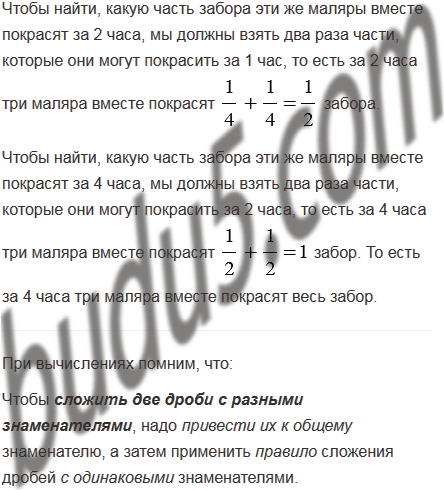 Первый маляр может покрасить забор за 15 ч, второй - за 12 ч, а третий - за 10 ч. Какую часть забора они покрасят вместе за 1 ч? За 2 ч? За 4 ч?